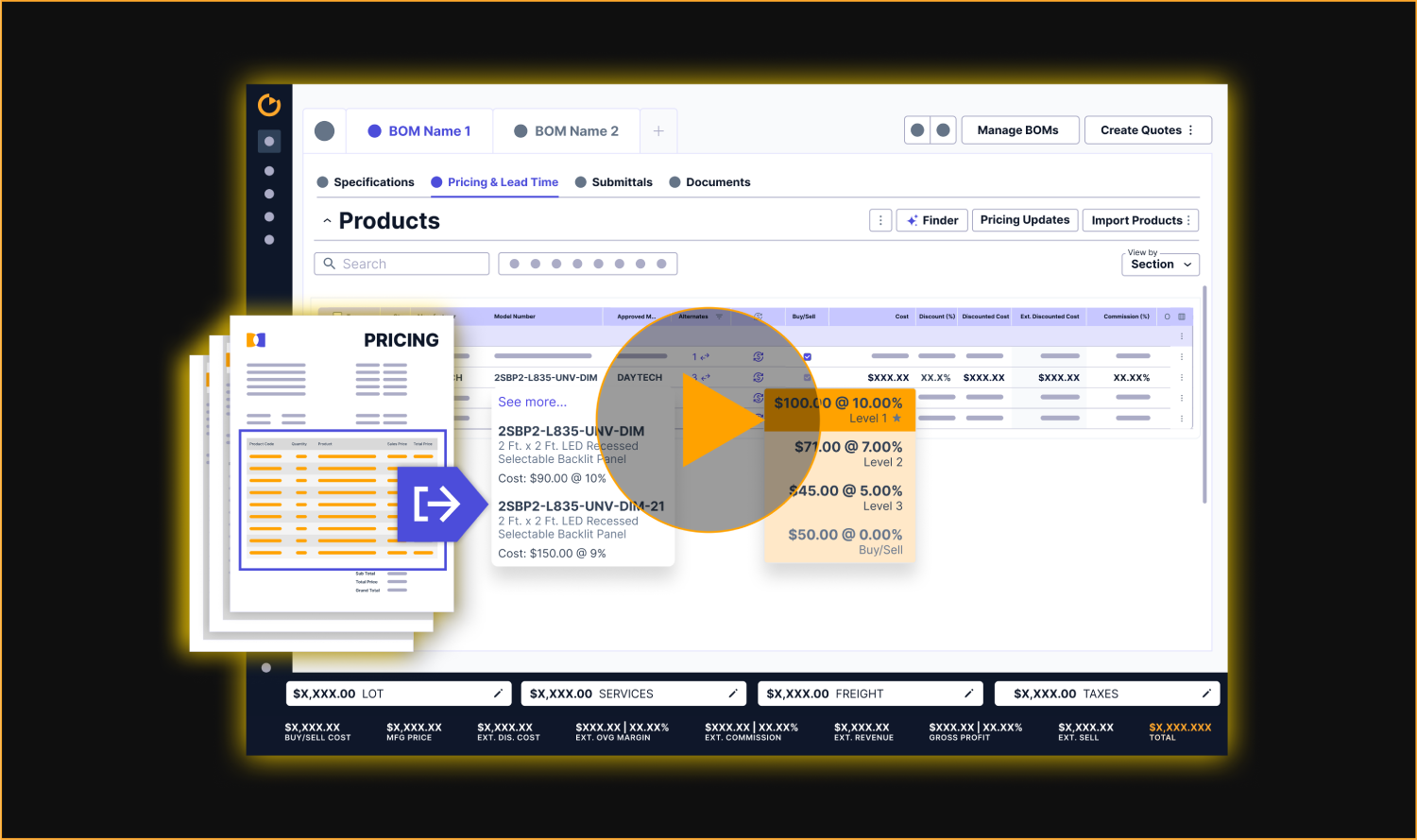 Manage quotes, submittals, orders, billing, and commissions in one workspace—reducing system switching, manual handoffs, and operational leakage across projects.
