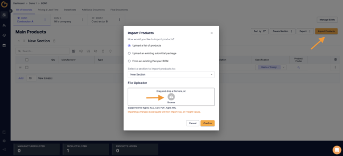 3. After the BOMs are created, go into the primary BOM and import your list of products.