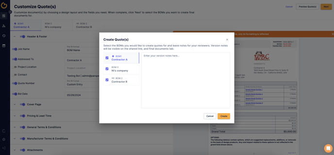 Learn how to create and seamlessly send a quote to multiple contractors. The steps below will showcase how to create multiple BOMs and the ability to link them to avoid any duplicate efforts.
