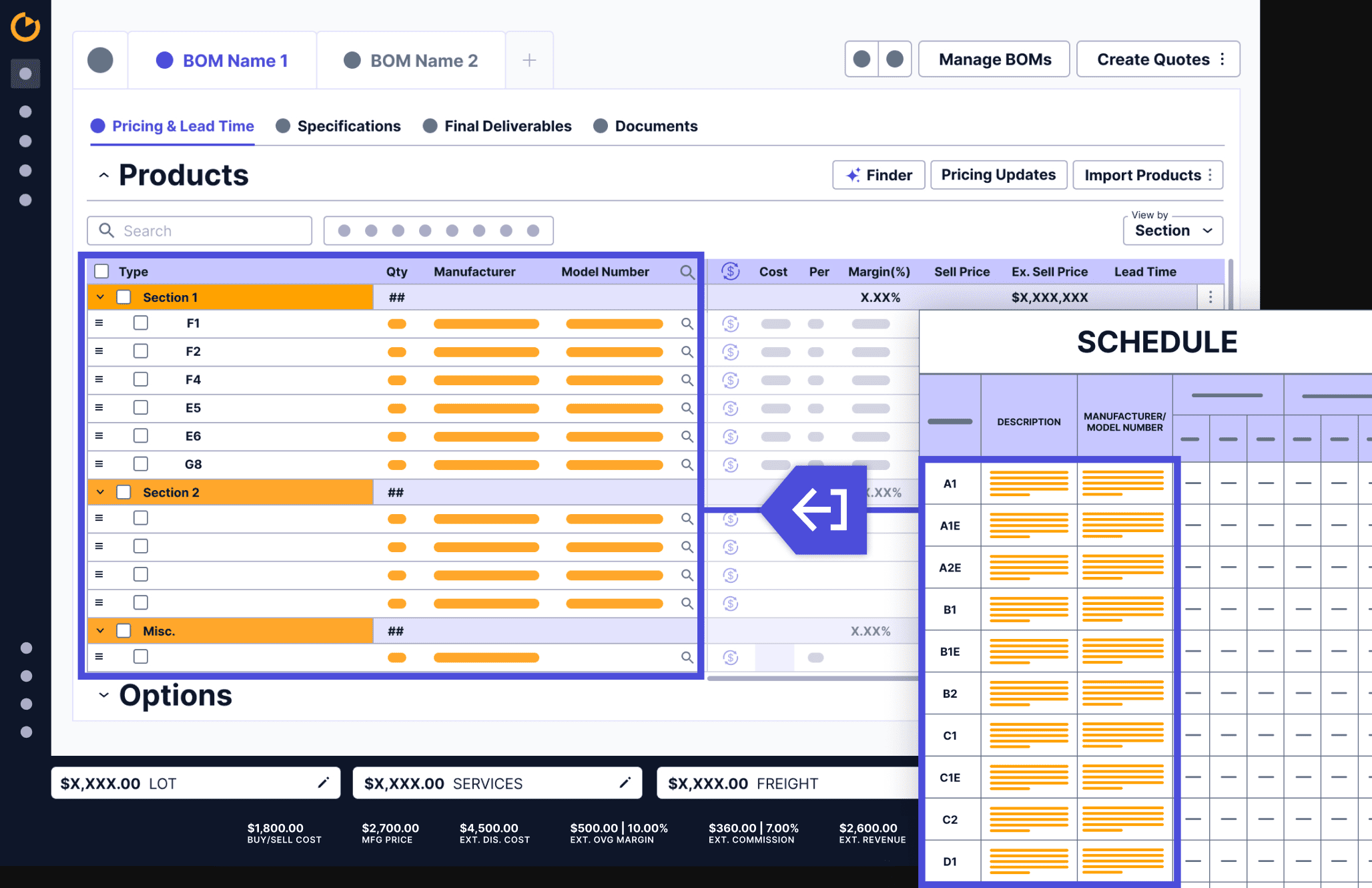 Manage every single line-level BOM from quote to project close-out while maintaining pricing accuracy and centralizing management of breakouts, orders, invoices, and delivery schedules.