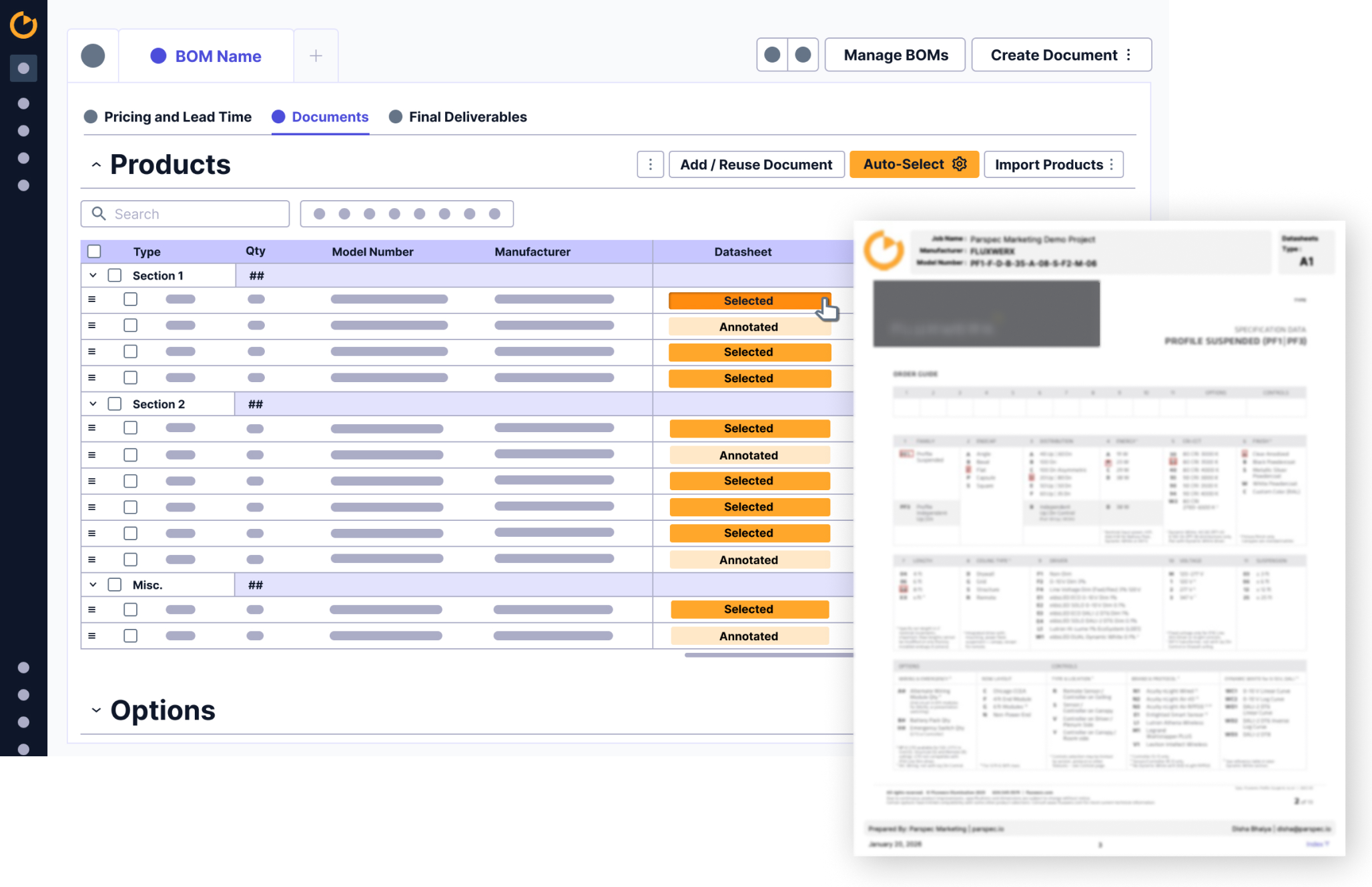 Automatically bulk-attach the correct cut sheets, manuals, and warranty documents from our continuously updated library, or bring your own and eliminate manual searches.