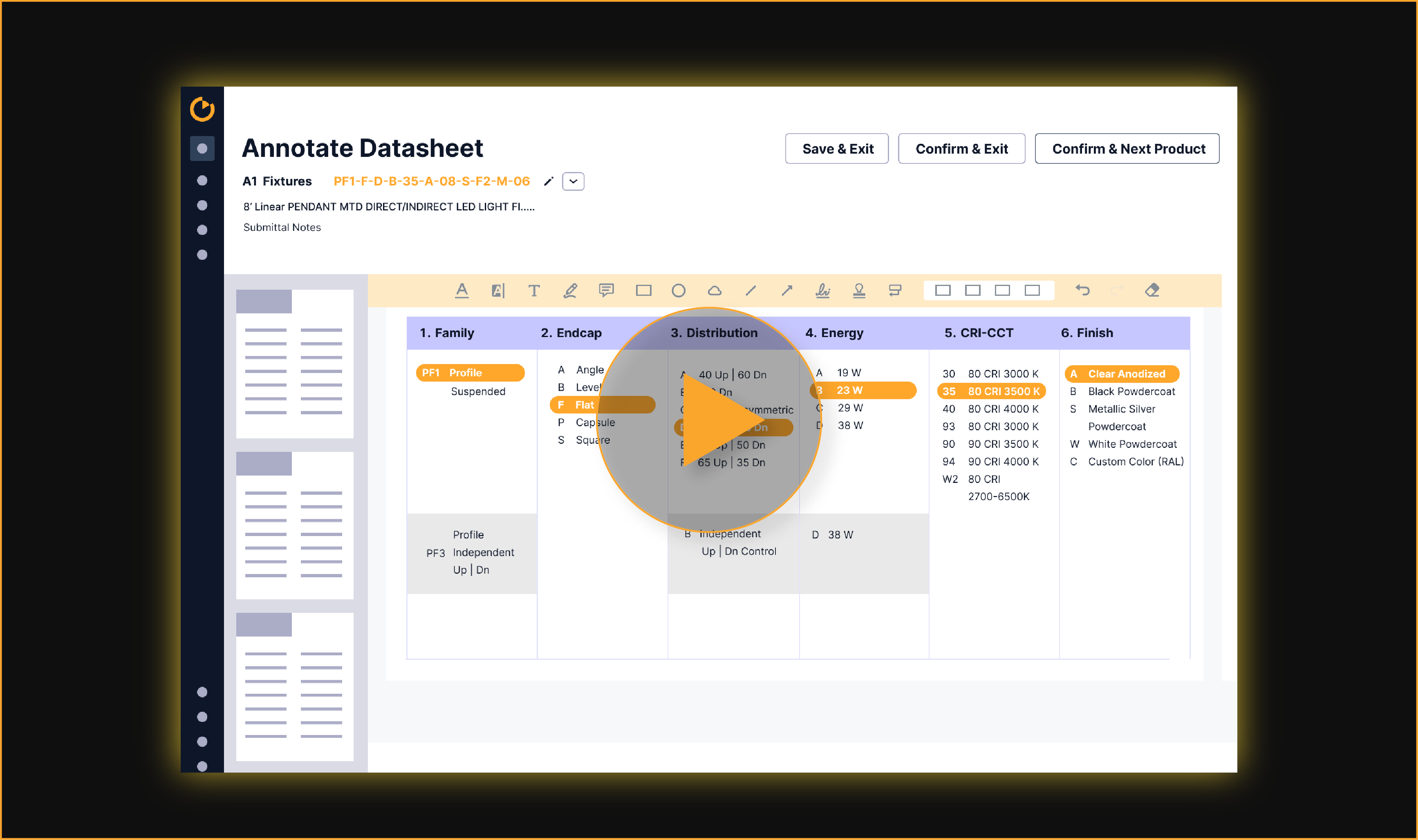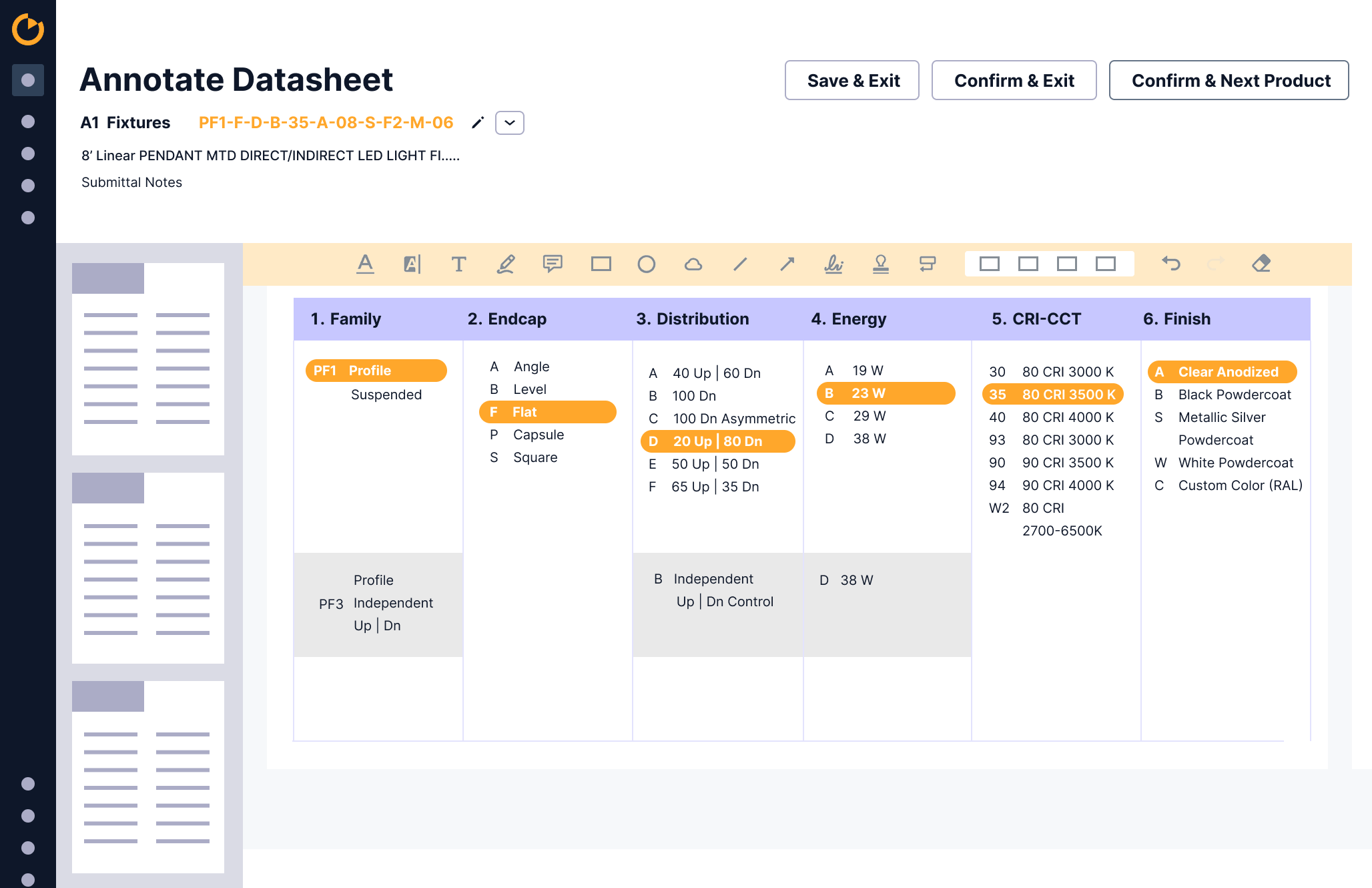 Teams can jumpstart a new data sheet review with pre-identified configurations for one-click markup. For familiar products, historical annotations can be reused to reduce review time and errors.